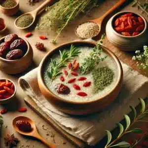 Món Ăn tăng khí sinh tinh dưỡng tuỷ hồi sinh lực đầu tiên là Cháo Tiềm. Cháo tiềm phục hồi sinh lực có nhân sâm...