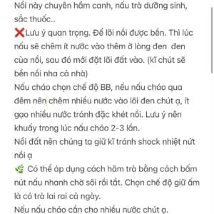 - Khi nấu cháo: Chọn chế độ BB. Nên chêm nhiều nước vào lõi đen, ít gạo nhiều nước để tránh đặc khét nồi. Lưu ý nên khuấy trong lúc nấu cháo 2-3 lần.