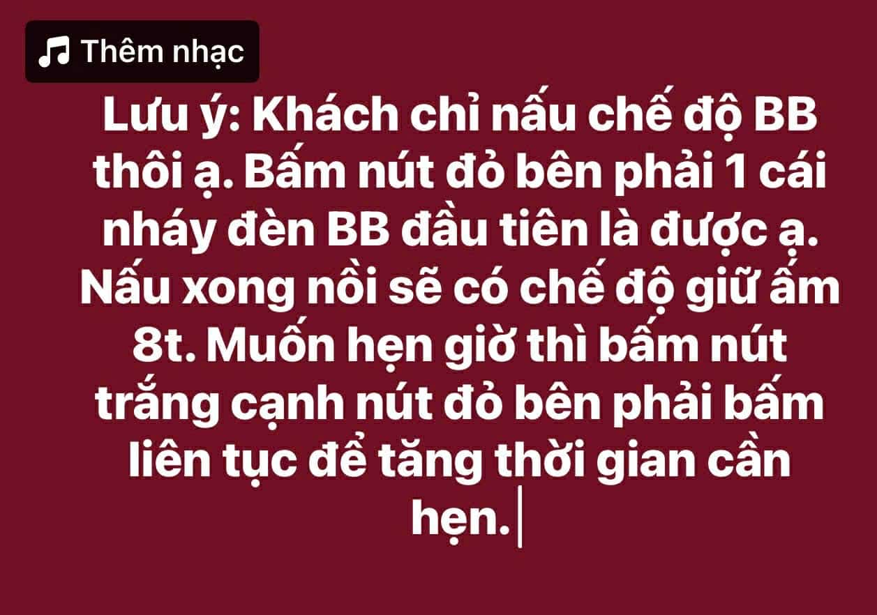 - Khi nấu cháo: Chọn chế độ BB. Nên chêm nhiều nước vào lõi đen, ít gạo nhiều nước để tránh đặc khét nồi. Lưu ý nên khuấy trong lúc nấu cháo 2-3 lần.