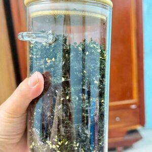 - Nghiền vụn: Đổ rong biển đã rang ra ngoài, dùng tay bóp cho vụn nhỏ.